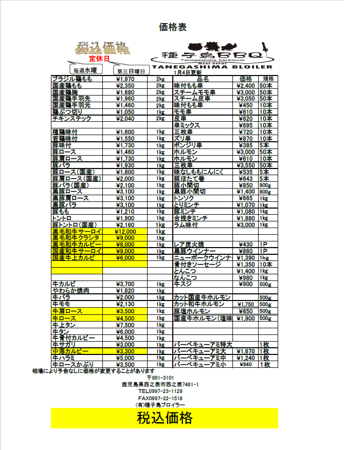 ※相場により予告なしに価格が変更することがあります。(1月4日更新時点)